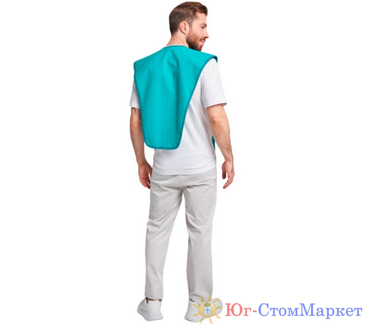 В отличие от стандартного стоматологического фартукаимеет более удлиненную спинку для защиты позвоночника.