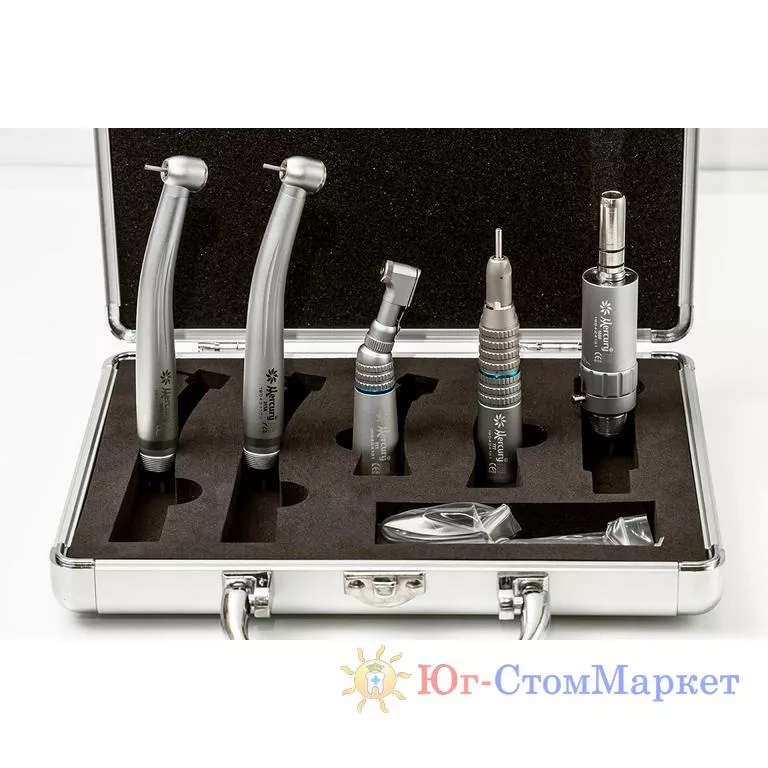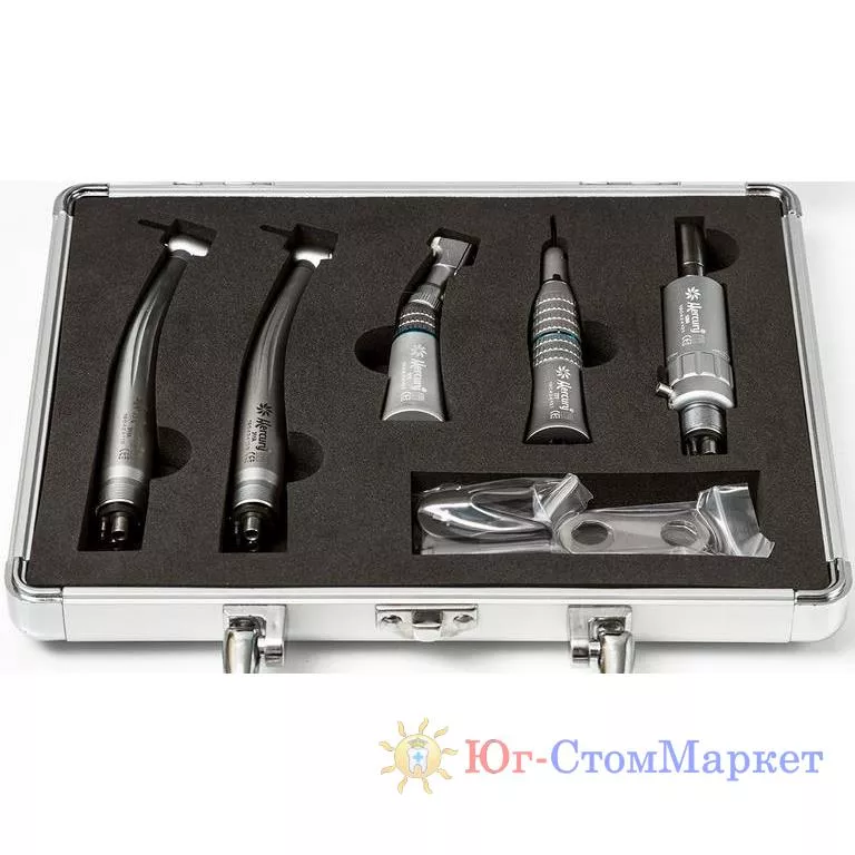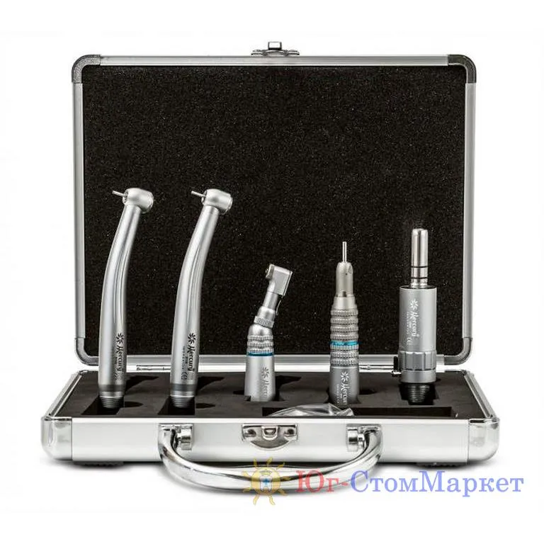 В наборе 2 кнопочных наконечника, пневмодвигатель, угловой и прямой наконечники.