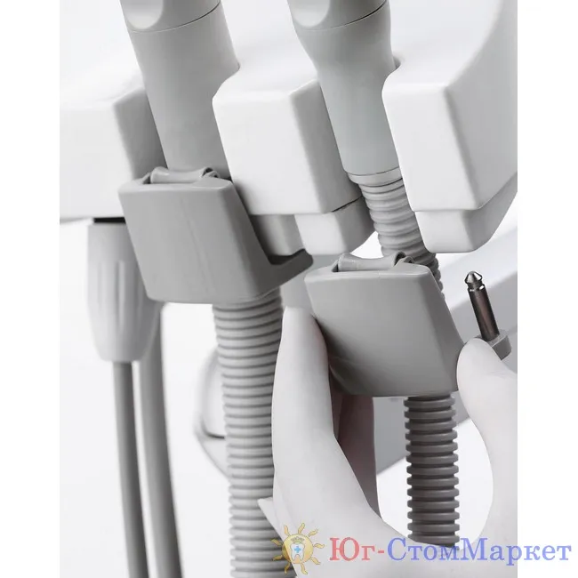 -Система анти-всасывания для наконечников, автоматическая продувка и промывка шлангов водой каждого инструмента.