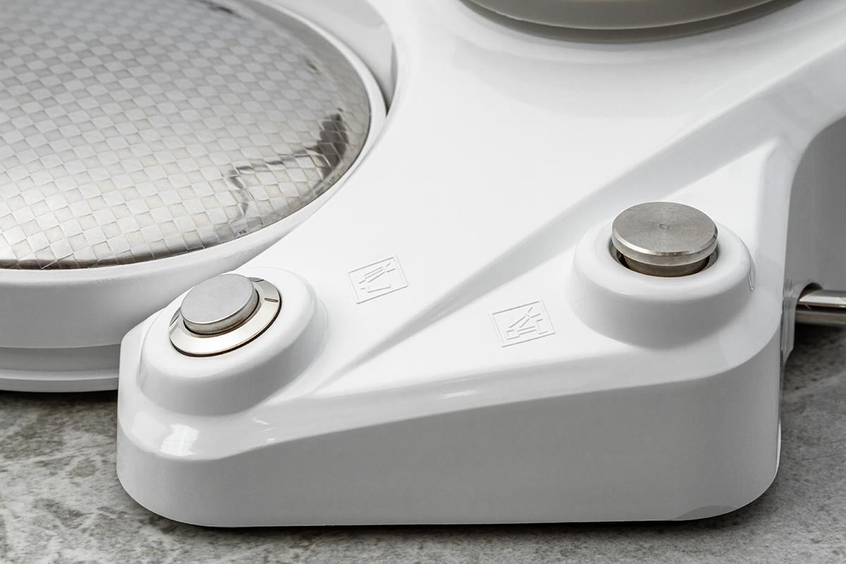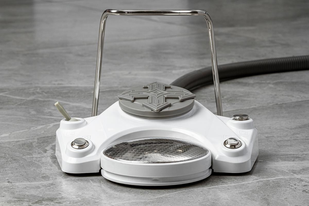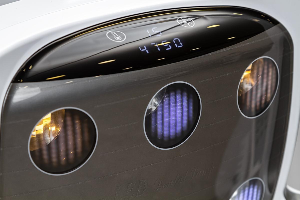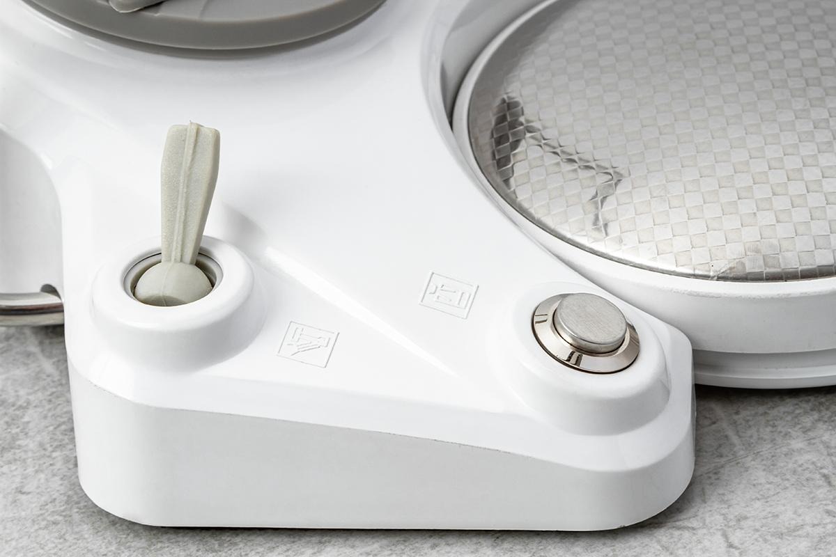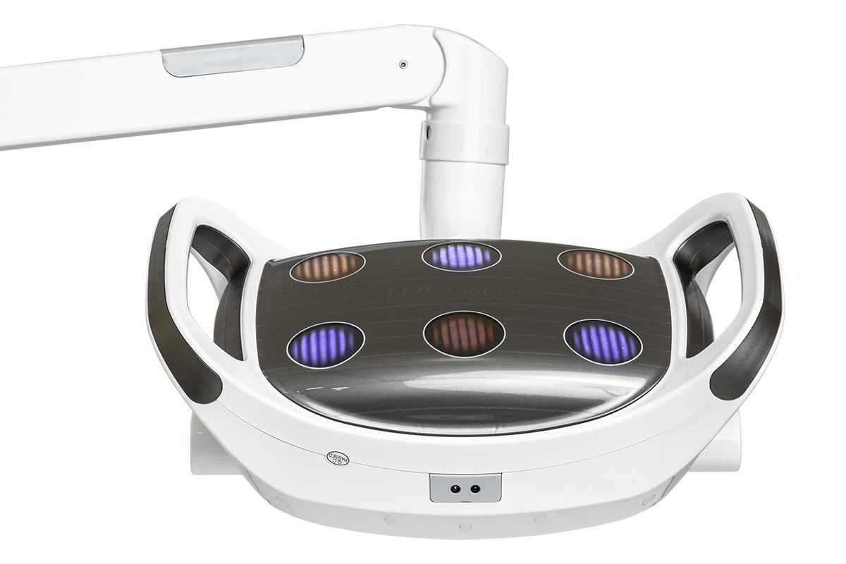 -Врачебный модуль имеет пантограф с пневмотормозом. Блок управления креслом и плевательницей. Четыре выхода М4 и водовоздушный спрей.
