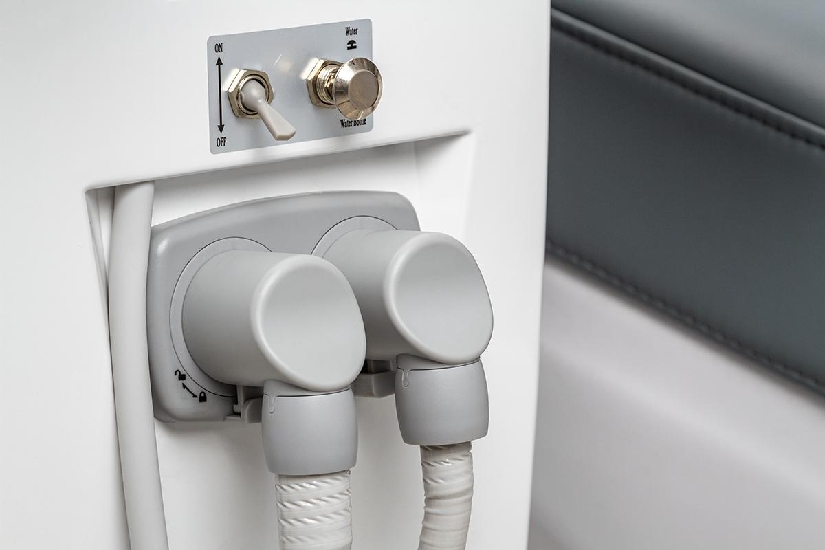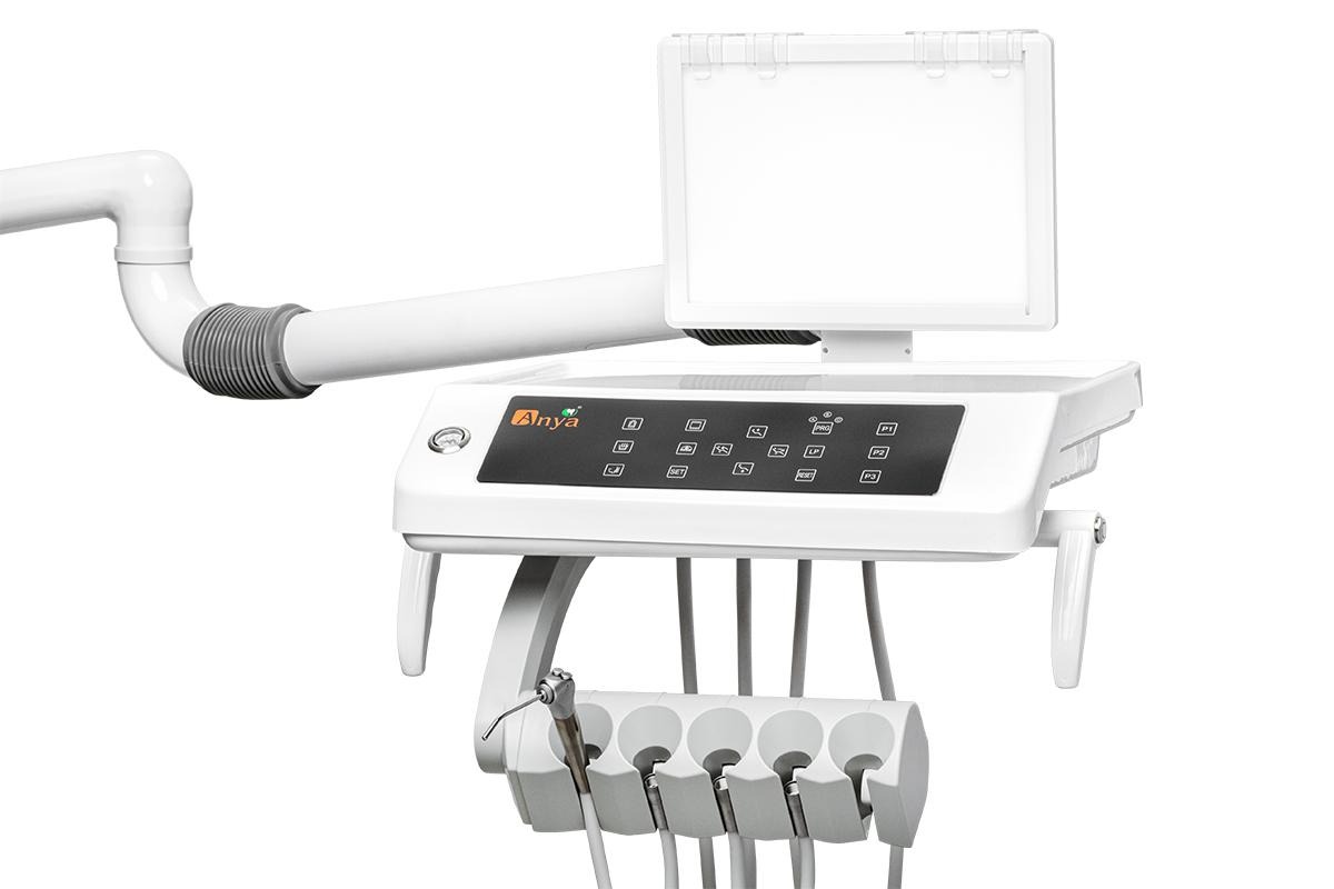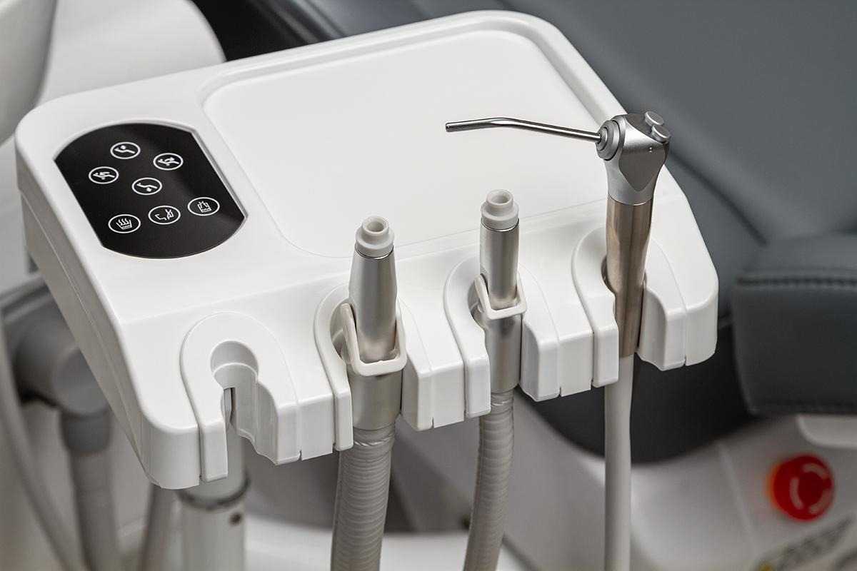 Модуль ассистента рассчитан на четыре инструмента, в базовой комплектации оснащен пылесосом, слюноотсосом, и пистолетом вода-воздух.