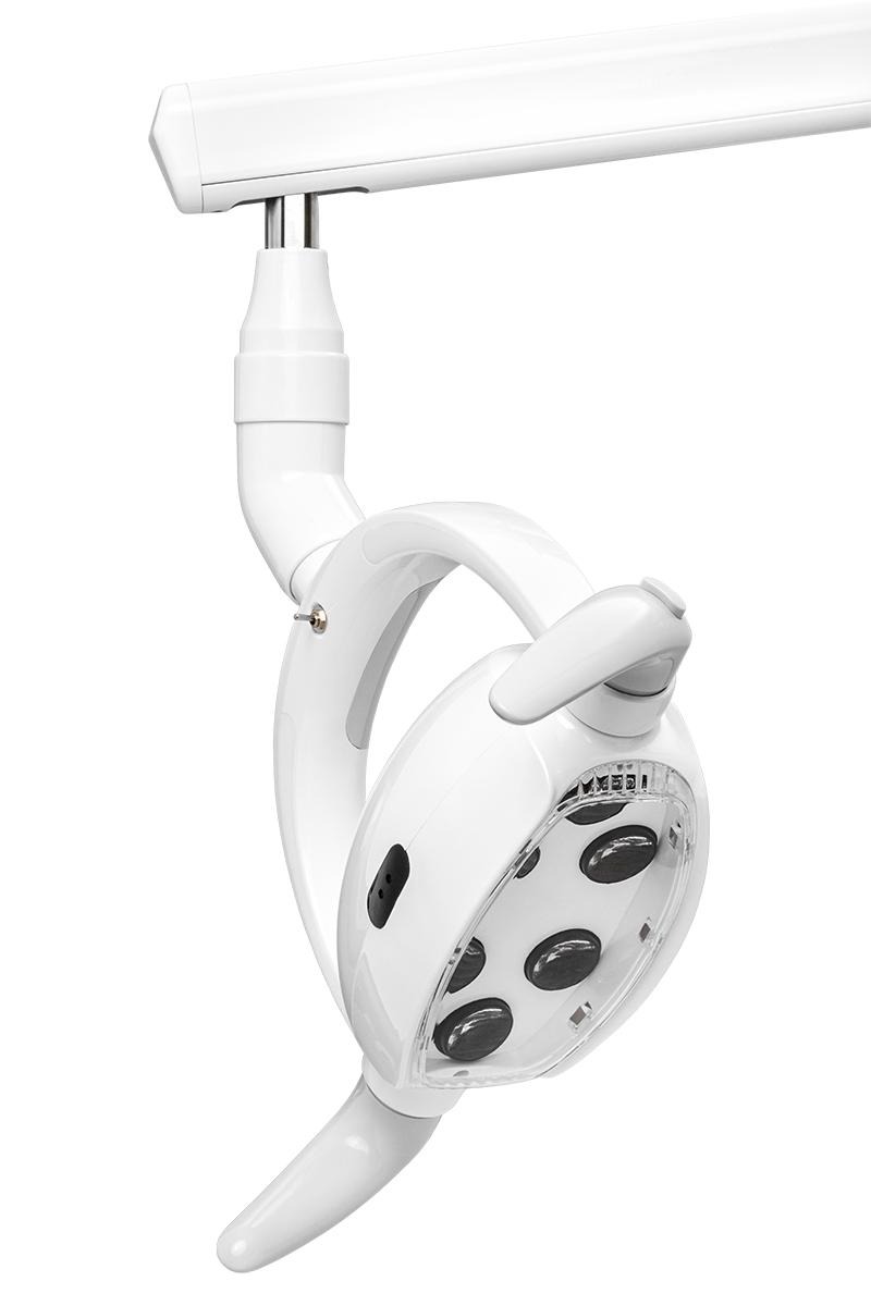 Врачебный модуль имеет пантограф с пневмотормозом. Блок управления креслом и плевательницей. Три выхода М4 и водовоздушный спрей;