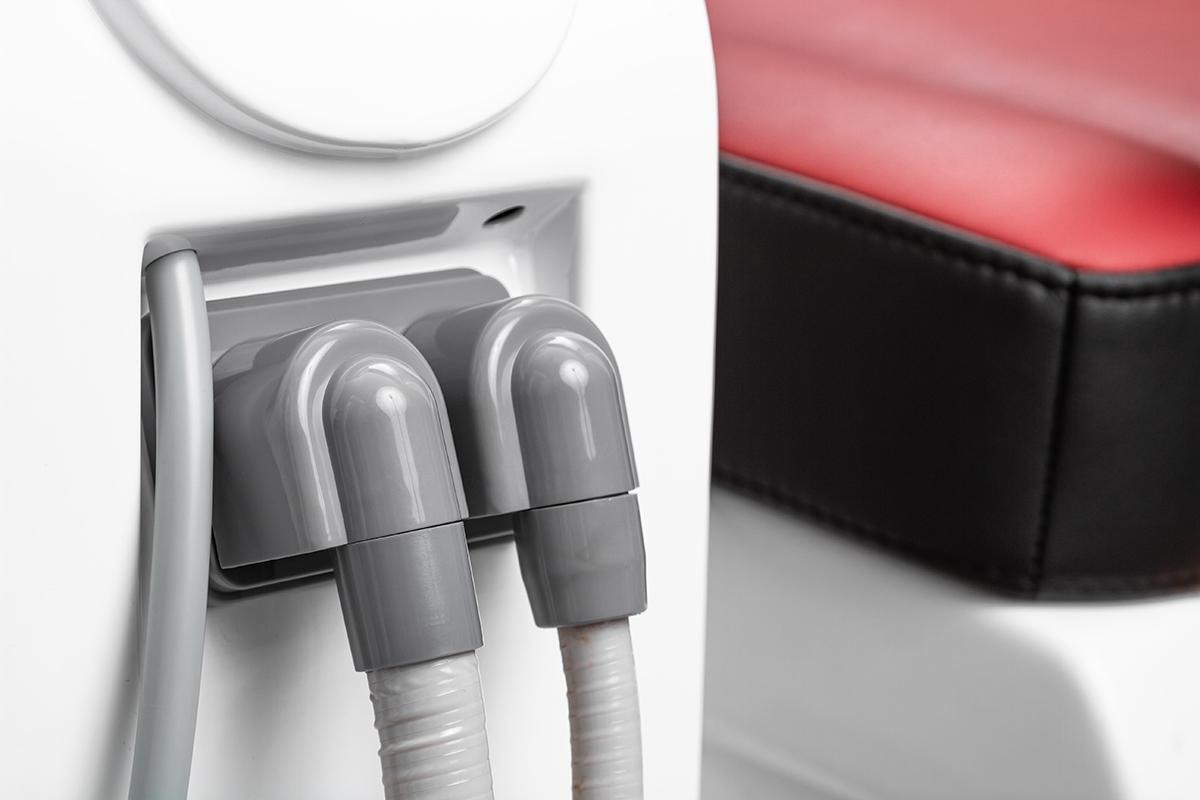 -Эжекционная система аспирации с увеличенными гофрированными шлангами 17 мм и 10 мм на пылесос и слюноотсос, для дальнейшей модернизации под вакуумную систему аспирации (Cattani, Mercury, MonoJet, Durr).