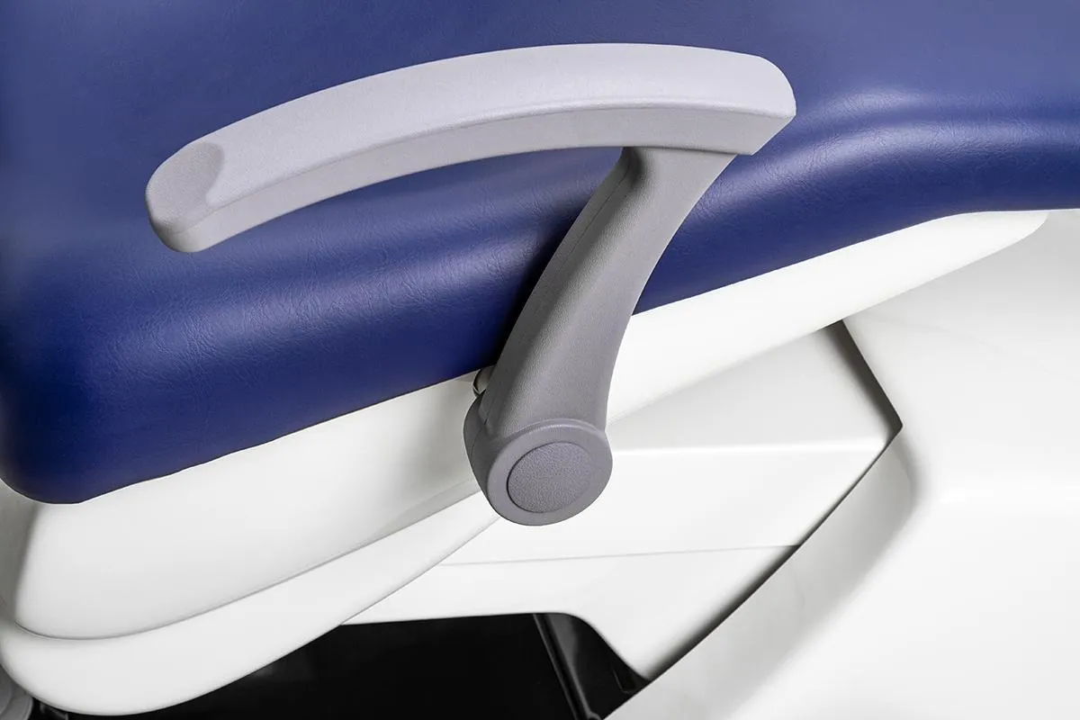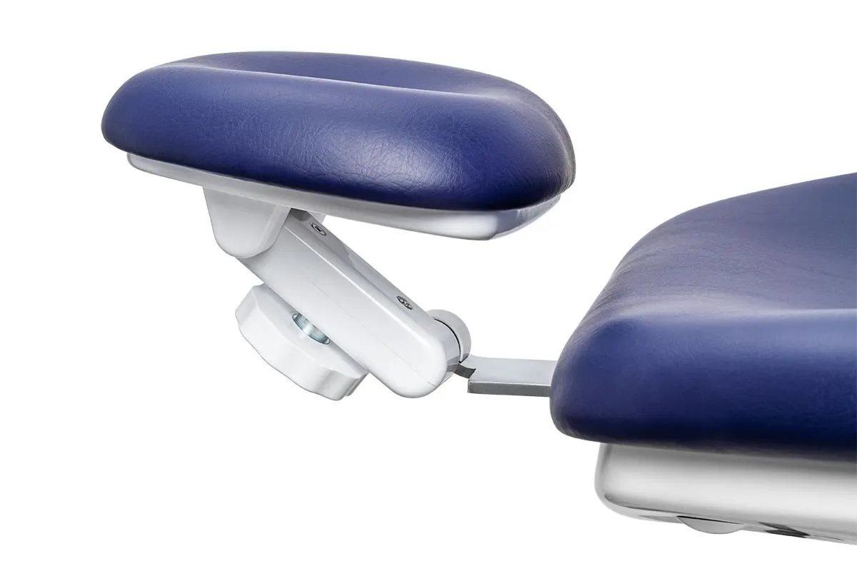 Сиденье для пациента отличается высокой надежностью и широким функционалом. Подлокотники и спинка регулируются и настраиваются так, чтобы пациент чувствовал себя максимально комфортно. С помощью блока управления вы может регулировать высоту кресла для более комфортной работы.