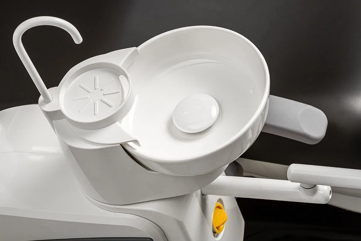 Установка WOD330 оборудована многофункциональной плевательницей. Она выполнена из керамики высокого качества, что обеспечит ей долгий срок службы. Плевательница способна поворачиваться на 90º и сниматься.